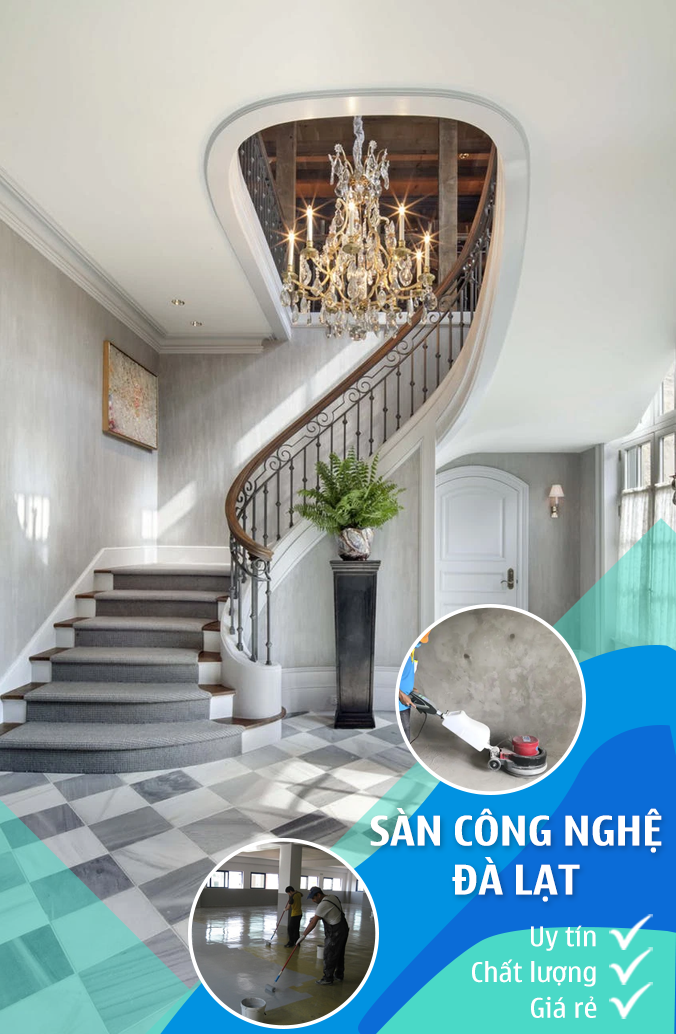 Sàn Công Nghệ Đà Lạt là đơn vị chuyên về lĩnh vực thi công – sơn sàn, mài – đánh bóng sàn, sơn chống thấm tại Đà Lạt và các tỉnh thành lân cận. Đội ngũ của chúng tôi gồm các thành viên với kinh nghiệm lâu năm trong nghề, giúp quý khách có một ngôi nhà chất lượng và kiểm soát tối đa các chi phí và rủi ro trong quá trình thi công.