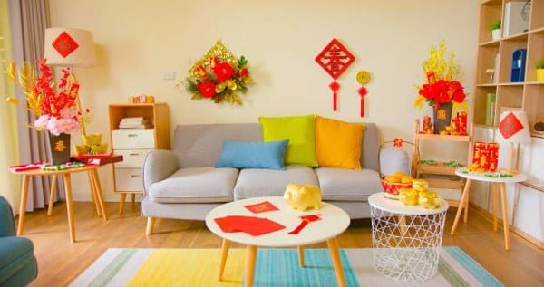 Không những tạo cảm giác ấm cúng, thảm trải sàn còn là vật dụng trang trí hiệu quả. Nếu bạn lựa chọn thảm trải sàn với màu sắc và loại thảm phù hợp sẽ làm cho phòng khách nhà mình phù hợp với không khí Tết rộn ràng.